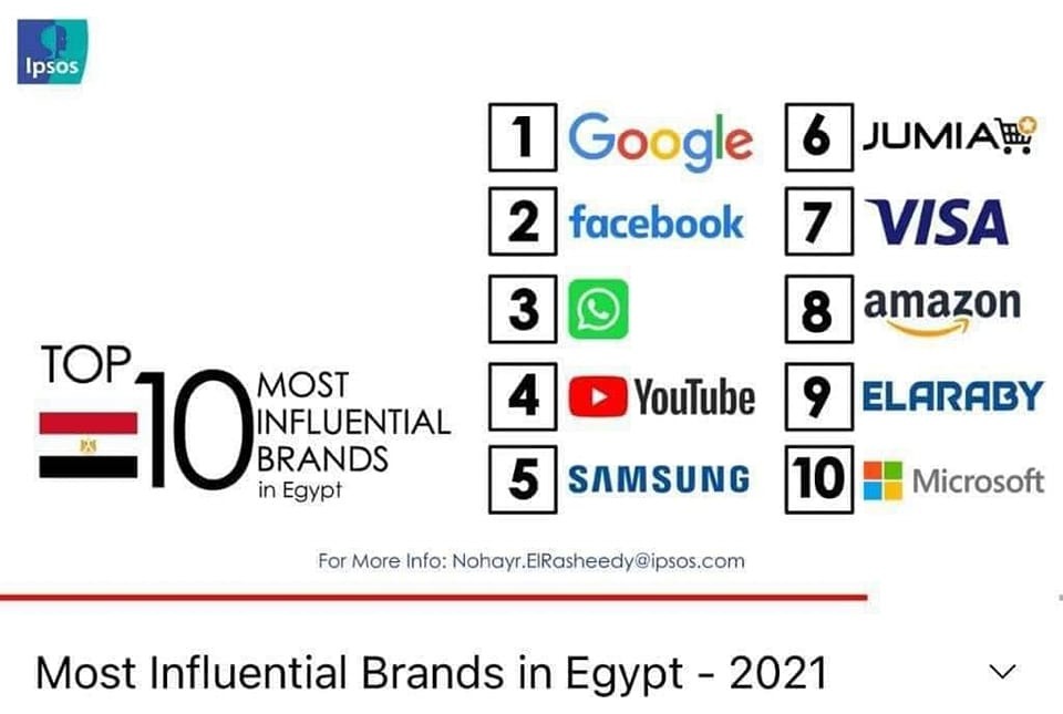 قد أعلنت عن نتائج استطلاع “العلامات التجارية الأكثر تأثيرا” الذي أجرته للمرة الثانية في مصر، وفي دراسة للعلامات التجارية الأكثر تأثيرًا من إبسوس IPSOS وتم إدراج 120 علامة تجارية وطنية وإقليمية وعالمية وتم تقييم تأثيرها على 14 فئة من المستهلكين المصريين.