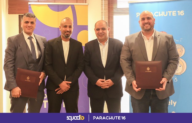 وقع الاتفاقية من جانب سكواديو محمد التوني الرئيس التنفيذي للعمليات، ومن جانب شركة باراشوت16 غسان حلاوة الرئيس التنفيذي. بحضور كريم من وزير الاقتصاد الرقمي والريادة الوزير أحمد الهناندة.
