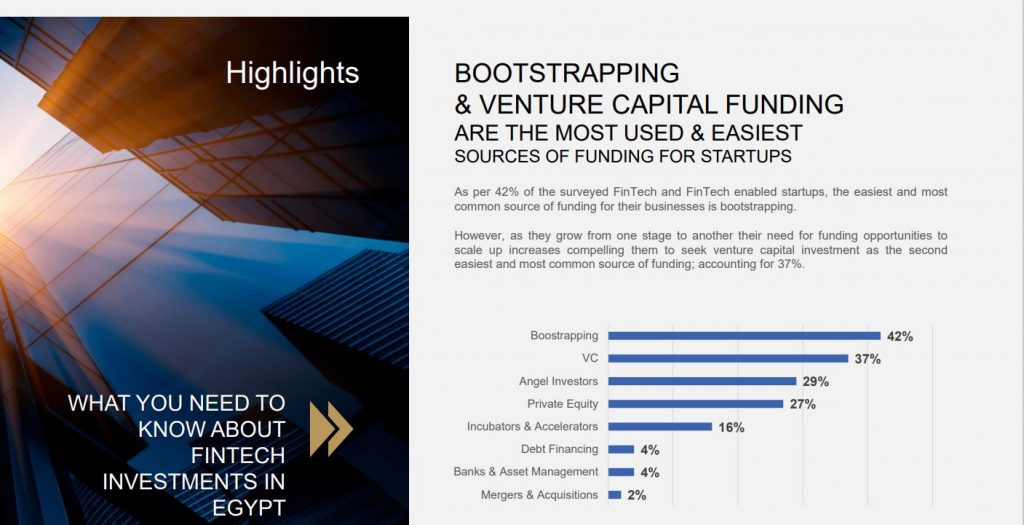 وأوضح التقرير أن 42% من شركات التكنولوجيا المالية أو الداعمة لقطاع التكنولوجيا المالية، استخدمت الطريقة الأسهل والأكثر شيوعًا في بدء الأعمال وهي الاستثمارات العائلية أو الشخصية، بينما مع نمو الشركات من مرحلة إلى أخرى فإنها تحتاج إلى مصادر أخرى للتمويل.