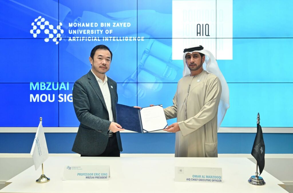 وجرى توقيع الاتفاقية بحضور كل من عمر المرزوقي، الرئيس التنفيذي لشركة “إيه آي كيو”، والبروفيسور إريك زينغ، رئيس جامعة محمد بن زايد للذكاء الاصطناعي، إلى جانب أعضاء الإدارة العليا من كلا المؤسستين.