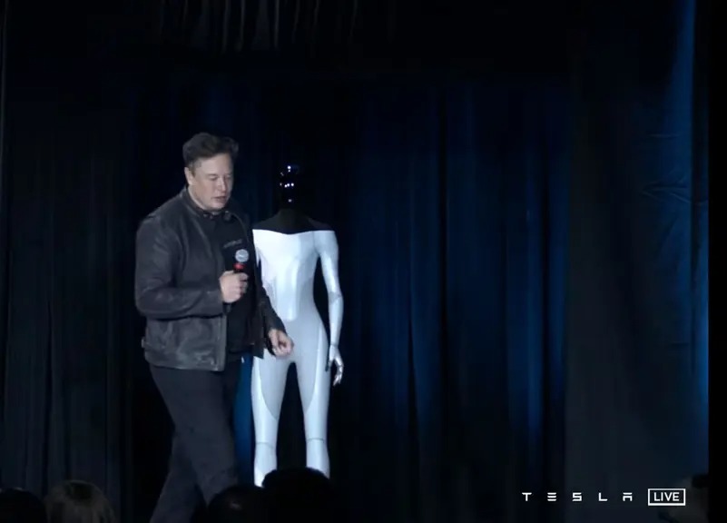 كانت أبرز أحداث عرض أول “يوم للذكاء الاصطناعي” لـ”تسلا” الذي أقيم في أغسطس من العام الماضي، هو الروبوت ذو الصفات البشرية، الذي كان في ذلك الوقت بشرياً بشكل كامل. فبعد أن قدم المهندسون عروضاً تفصيلية تقنية للغاية حول أعمال تطوير نظام القيادة في الشركة، صعد شخص يرتدي بدلة بيضاء ضيقة وخوذة سوداء على خشبة المسرح لأداء رقصة سريعة ومتقطعة والتمهيد والتبشير بإعلان ماسك.