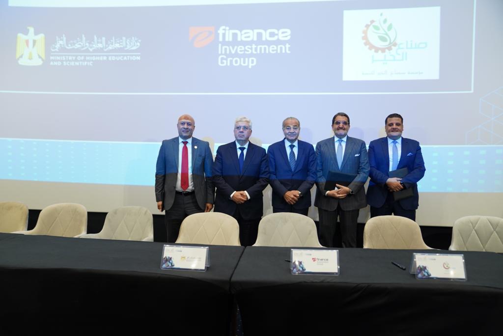 وشهد التوقيع كل من الدكتور أيمن عاشور وزير التعليم العالي والبحث العلمي، والسيد الأستاذ إبراهيم سرحان الرئيس التنفيذي ورئيس مجلس إدارة مجموعة “إي فاينانس” للاستثمارات المالية والرقمية، والسيد الأستاذ مصطفى زمزم رئيس مجلس أمناء مؤسسة صناع الخير سفير المبادرة الرئاسية حياة كريمة عضو التحالف الوطنى للعمل الأهلي التنموي.