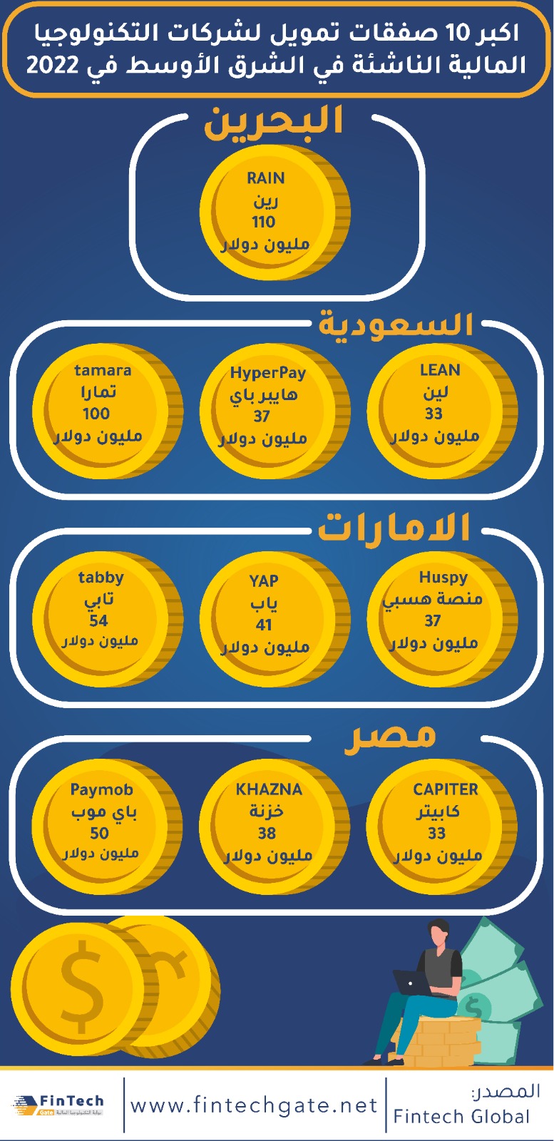 أكبر 10 صفقات تمويل لشركات التكنولوجيا المالية الناشئة في الشرق الأوسط في 2022
