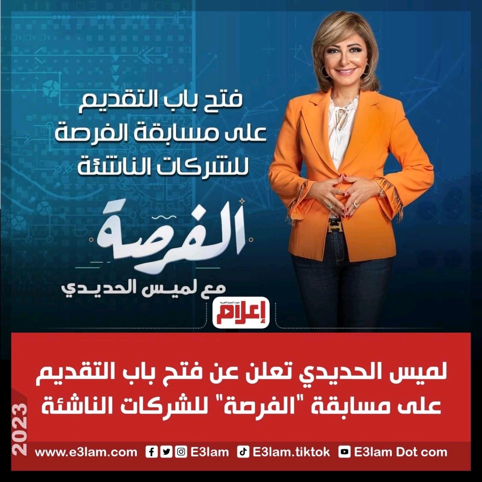 أعلنت الإعلامية لميس الحديدي عن فتح باب التقديم لموسم الجديد من برنامج «الفرصة»، الذي يعد أكبر مسابقة تليفزيونية لأصحاب الشركات الناشئة الـstartups في مصر والوطن العربي، والمقرر اذاعته على قناة ON، وكانت الانطلاقة الأولى له العام الماضي.