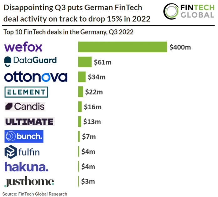 وتصدرت المملكة المتحدة، الدولة الأوروبية في مجال التكنولوجيا المالية في فبراير 2023 ، حيث جمعت الشركات البريطانية 38 صفقة، أي ما يعادل 46٪ من إجمالي الصفقات. وجاءت ألمانيا في المرتبة الثانية بحصة 13.4٪ من الصفقات ، واحتلت فرنسا المركز الثالث بحصة 8.5٪.