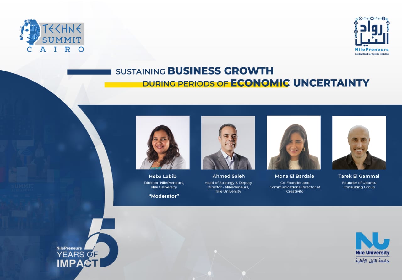 وأوضحت أن مبادرة رواد النيل ستنظم خلال القمة، جلستين نقاشيتين، الأولى حول قصص نجاح رواد الأعمال ويديرها الدكتور محمد عباس المدير التنفيذي المساعدة بالمبادرة لريادة الأعمال، ويشارك فيها 5 من مؤسسي الشركات المحتضنة بالمبادرة لعرض تجاربهم، والجلسة الثانية يشارك فيها المهندس أحمد صالح نائب مدير عام ورئيس الاستراتيجية والابتكار بمبادرة رواد النيل، وتتناول موضوع استدامة نمو الأعمال في ظل التحديات الإقتصادية، كما تعقد المبادرة ورشة عمل حول قدرة الشركات الناشئة على فتح أسواق جديدة والتصدير ويشارك فيها المهندس محمد الكتاتني مدير برنامج مراكز التميز من أجل التصدير بالمبادرة.