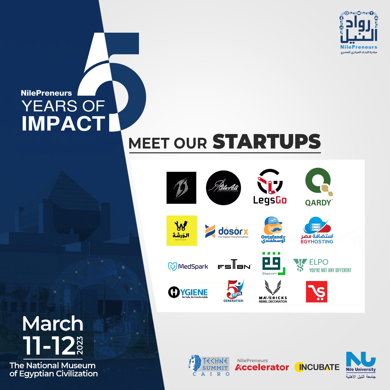 تشارك 16 شركة ناشئة من الشركات المحتضنة ضمن برامج حاضنات الأعمال ومسرعات الأعمال بمبادرة رواد النيل إحدى مبادرات البنك المركزي وتنفذها جامعة النيل الأهلية بالتعاون مع عدد من الجهات والبنوك، في قمة ” تكني Techne Summit 2023″ التاسعة للتكنولوجيا وريادة الأعمال والتي تعقد يوم السبت المقبل بمتحف الحضارة للعام الثاني على التوالي وتستمر لمدة يومين.