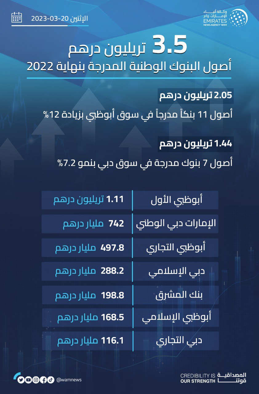 950 مليار دولار أصول 18 بنكا إماراتيا مدرجا بالبورصة المحلية