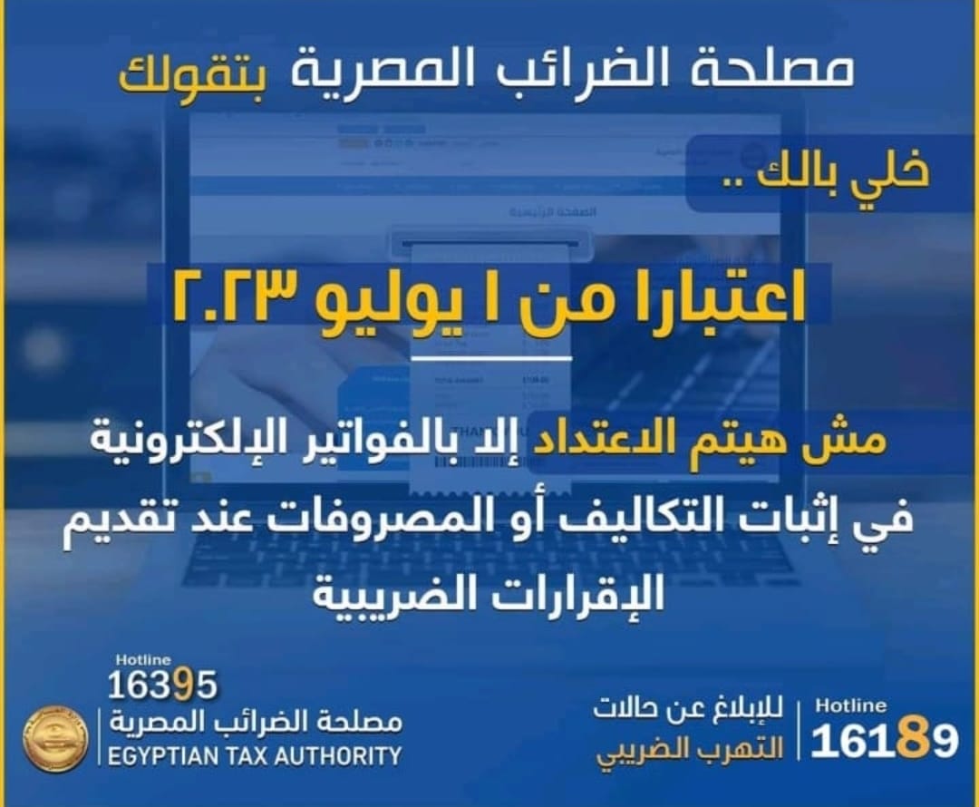 الرئيسية » الضرائب المصرية: لن يعتد إلا بالفواتير الإلكترونية في إثبات المصروفات إعتبارا من يوليو المقبل