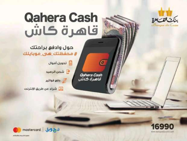 وتعد خدمة قاهرة كاش “Qahera Cash” هو تطبيق يمكن لعملاء البنك تحميله من متاجر الآيفون أو الأندرويد، وهي عبارة عن محفظة متنقلة يقدمها البنك للأفراد المصريين فقط، حيث يسمح للعميل بسهولة استخدام هاتفك المحمول لسداد الفواتير وتحويل الأموال من حساب لآخر، أو لحسابات خارج البنك، وحتى التسوق الإلكتروني وشراء أشياء من مواقع التبضع في أي وقت أينما كنت.