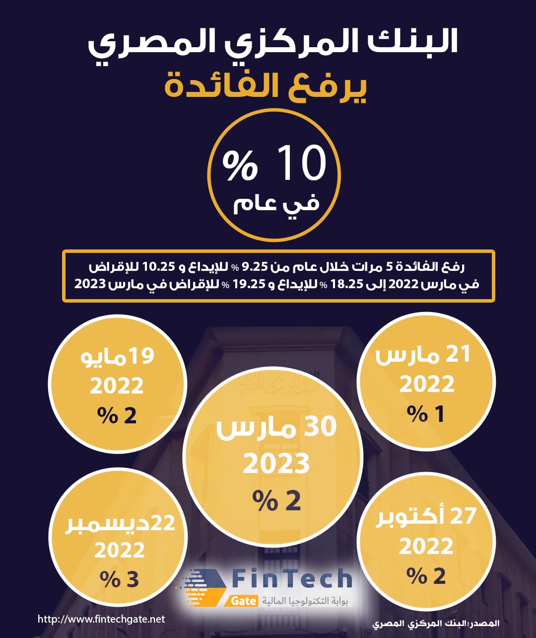الفترة من 21 مارس 2022 إلى 30 مارس 2023 برفع أسعار الفائدة بنحو 10%.
