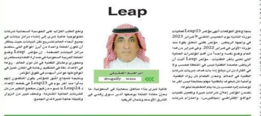 ودفع الطلب المتزايد على الحوسبة السحابية شركات تكنولوجيا عالمية كبرى إلى إنشاء مراكز بيانات في جميع أنحاء العالم لتسريع نقل البيانات حيث ينتظر أن تكون المملكة واحدة من أبرز المواقع التي ستضم مراكز البيانات الضخمة.. إن مؤتمر Leap وضع المملكة العربية السعودية في صدارة اهتمام مستثمري ومطوري وعشاق التقنية في كل دول العالم.. روعة في الاعداد، دقة في التنظيم، رحابة في المكان، تميز في الموقع كلها عوامل أسهمت في تفوق المؤتمر.