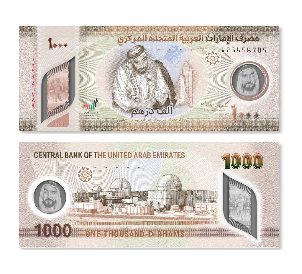 أعلن مصرف دولة الامارات العربية المتحدة المركزي عن طرح ورقة نقدية جديدة من فئة الـ1000 درهم، المصنعة من مادة البوليمر للتداول في الأسواق، وستكون متاحة في البنوك ومحلات الصرافة اعتباراً من يوم الأثنين 10 إبريل 2023.