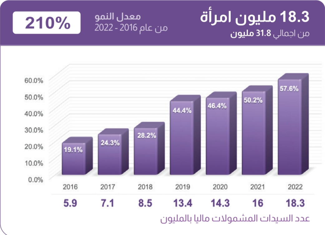 أعلن البنك المركزي أن عدد السيدات اللاتي يمتلكن حسابات مالية، بلغ 18.3 مليون سيدة في نهاية 2022، بمعدل نمو 210% مقارنة بعام 2016.