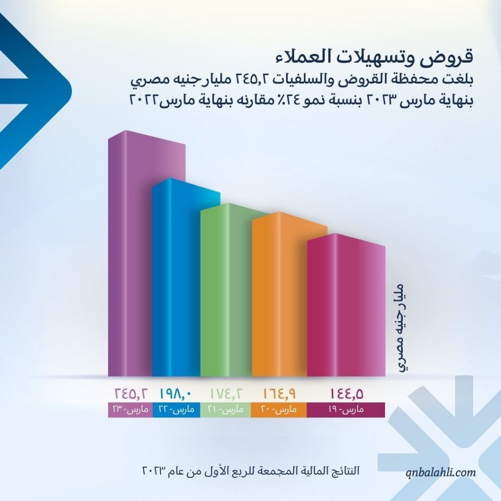 وأوضح البنك أنه في ظل استمرار السياسات الداعمة لنمو الاقتصاد القومي، زادت محفظة القروض والسلفيات 17 مليار جنيه لتصل إجمالا إلي 245 مليار جنيه وبما يمثل نموا قدره 8% مقارنة بديسمبر 2022، فيما بلغت الحصة السوقية للبنك من إجمالي القروض 5.64% في ديسمبر 2022 (طبقا لأخر بيانات متاحة من البنك المركزي المصري) ليحافظ البنك علي صدارته كأكبر بنك خاص مقرض في مصر.
