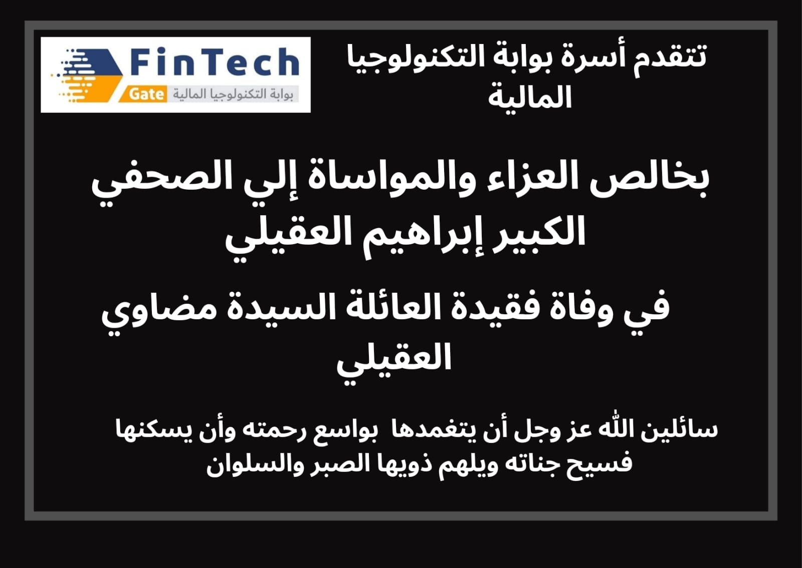 انتقلت إلى رحمة الله تعالى، السيدة مضاوي بنت سليمان فهد العقيلي، ابنة عم الزميل الإعلامي والكاتب الصحافي إبراهيم العقيلي، وعمة زوجته، كما أن الفقيدة والدة كل من: محمد (رحمه الله)، وعبدالرحمن، وأخواتهم: عائشة، منيرة (رحمها الله)، د. لولوة، فاطمة، حصة، وآمال، أبناء وبنات الراحل: عبدالله محمد المشعلي.