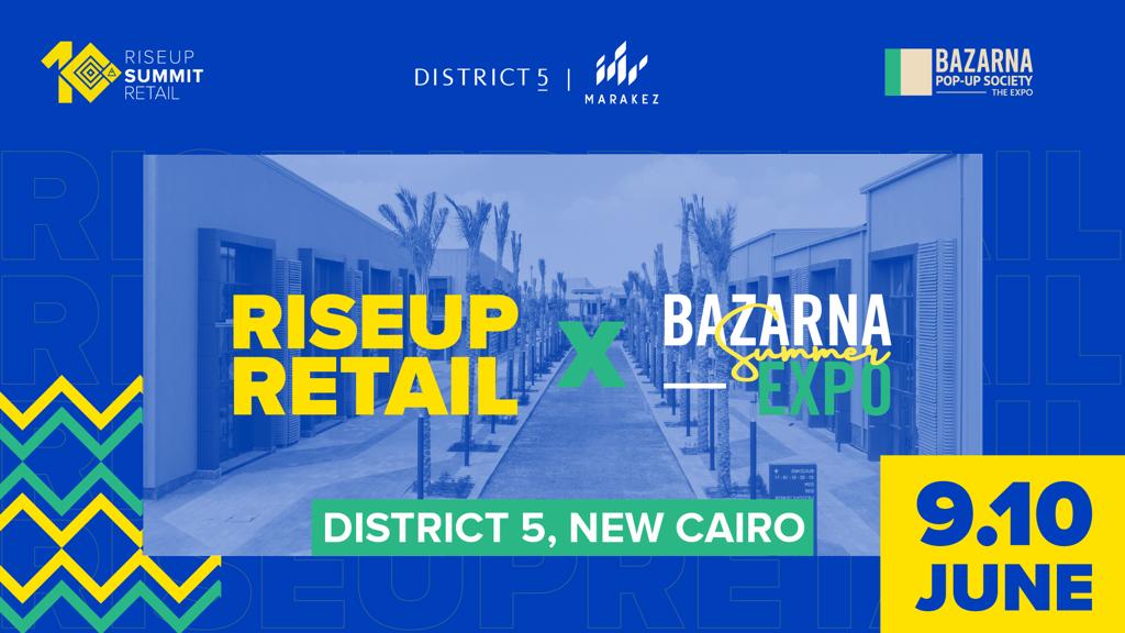 تطلق رايز اب الرائدة في مجال ريادة الأعمال في منطقة الشرق الأوسط وشمال افريقيا Riseup up Retail الحدث الاول من نوعة الذي يركز علي صناعة التجزئة، يأتي هذا الحدث كفرصة لدعم الصناعة المحلية وتجار التجزئة ودفع الفرص الاقتصادية ، ينعقد الحدث في يومي 9 و 10 يونيو وبالشراكة مع Marakez و Bazarna بمنطقة District 5.