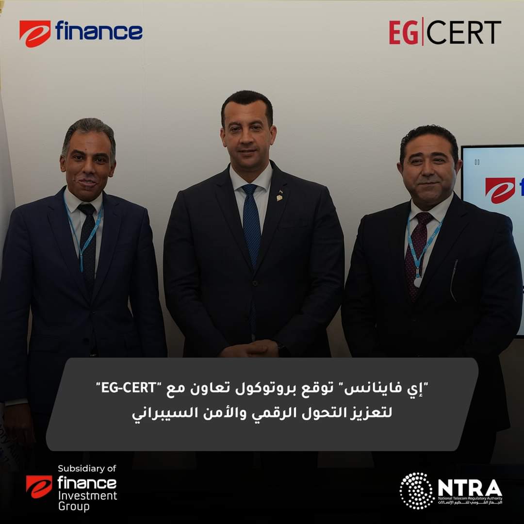 وقعت شركة” أي فاينانس” لتشغيل المنشآت المالية بروتوكول تعاون مع الجهاز القومي لتنظيم الاتصالات – مصر “NTRA” والمركز الوطني للاستعداد لطوارئ الحاسبات والشبكات “EG-CERT” التابع له لتعزيز التحول الرقمي والأمن السيبراني.