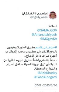 ونشر الكاتب في جريدة البلاد السعودية إبراهـيم العقـيلي @ogaily_wass صباح اليوم الثلاثاء 20 يونيو 2023 تغريدة اعتبرت مهمة قال فيها إن جهود المملكة لمحاربة التستر التجاري والتحايل عليه تصطدم بعقبات منها الاصرار على الدفع النقدي مقابل المشتريات.
