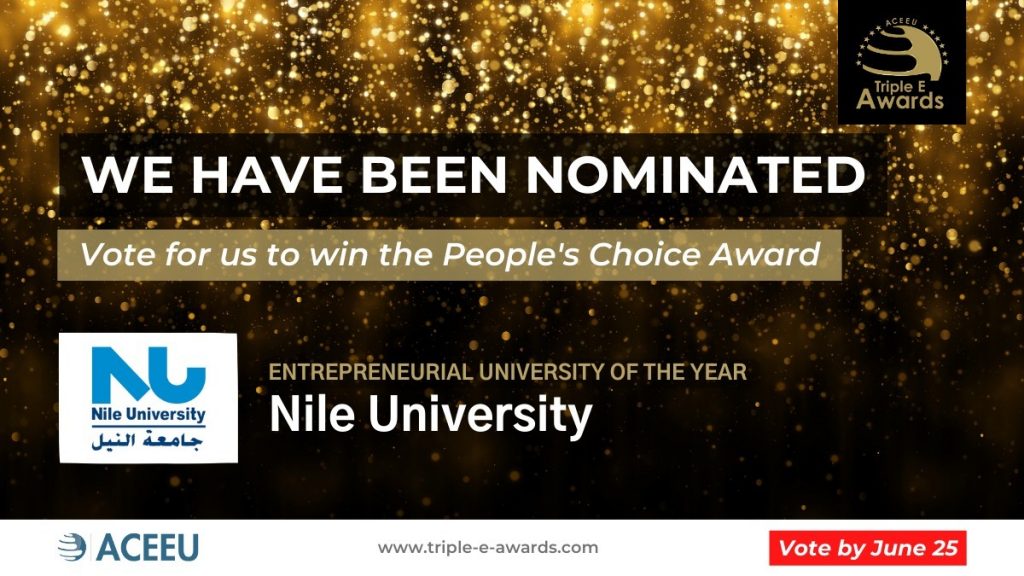 وتأسست جامعة النيل الأهلية قبل نحو 15 عاما كجامعة بحثية ريادية، واستطاعت أن يكون لها مشاركات مؤثرة في تنفيذ العديد من المبادرات الوطنية التي تستهدف زيادة الوعي حول مفهوم ريادة الأعمال وتعزيز نقل التكنولوجيا، ودعم القدرة التنافسية للصناعة المصرية، وتستضيف الجامعة مركز الابتكار والتنافسية وريادة الأعمال أحد أكبر مراكز ريادة الأعمال في مصر وايضا مبادرة رواد النيل إحدى مبادرات البنك المركزي الداعمة لريادة الأعمال.، ويمكن التصويت لجامعة النيل في هذه المسابقة من خلال هذا الرابط https://triple-e-awards.com/index/finalist/id/575.