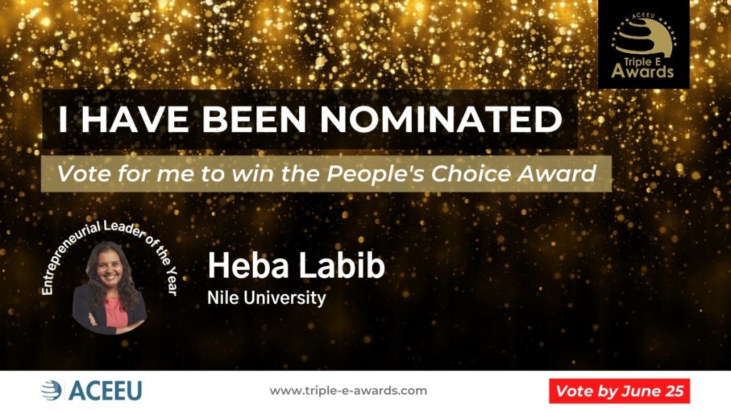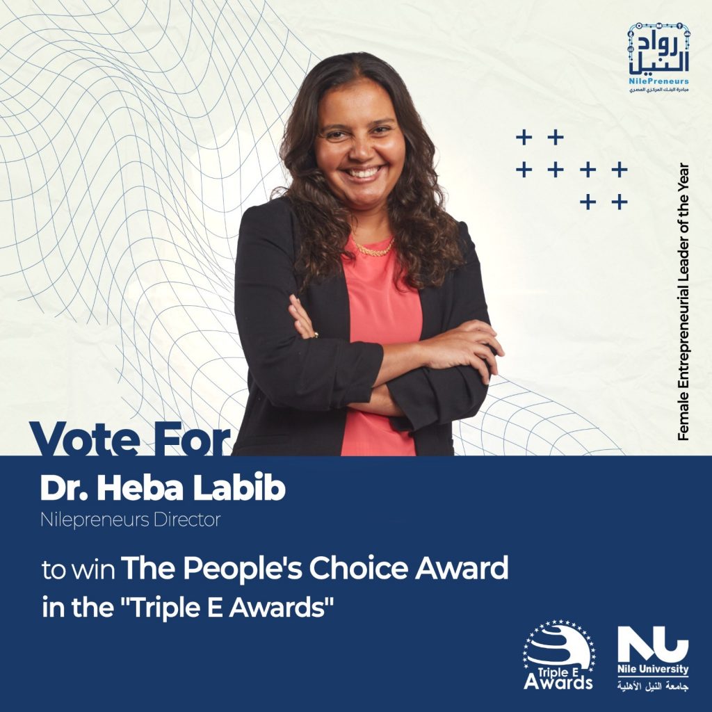 كما جاء ترشيح الدكتورة هبة لبيب المدير التنفيذي لمبادرة رواد النيل ومدير مركز الإبتكار وريادة الاعمال والتنافسية بجامعة النيل الأهلية لجائزة Triple E Awards””، ضمن فئة “Female Entrepreneurial Leader of the Year”، تقديرا لدورها في دعم مجالات ريادة الأعمال المختلفة في مصر على مدار سنواتن ويمكن التصويت للدكتورة هبيب لبيب من خلال هذا الرابط https://triple-e-awards.com/index/finalist/id/719.