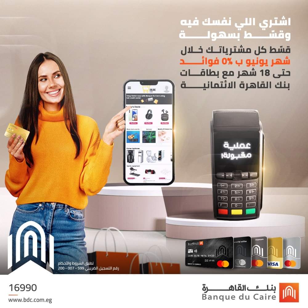 أعلن بنك القاهرة لعملائه عن إتاحة تقسيط مشترياتهم لمدة 18 شهر بدون فوائد في الفترة من 1 يونيو إلى 30 يونيو الجاري.