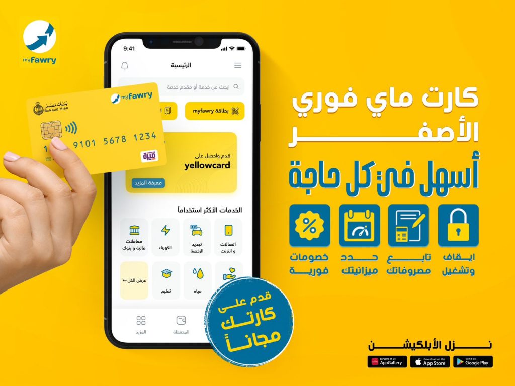 أطلقت شركة “فوري” الرائدة في تقديم خدمات تكنولوجيا البنوك والمدفوعات الإلكترونية بطاقة“yellowcard” myfawry مسبقة الدفع عبر تحالف عملاق يضم مجموعة من الشركاء لإطلاق البطاقة وهم بنك مصر، وشركة بنوك مصر للتقدم التكنولوجي ، المطور لنظم الدفع الوطنية ومشغل منظومة المدفوعات الوطنية “ميزة” ، في إطار دعم وتعزيز الحلول الرقمية والتكنولوجيا المالية لتسهيل الخدمات المالية غير التلامسية للأفراد والتجار بما يساهم في تحقيق خطة الدولة نحو التحول الرقمي.