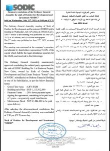 وأشارت إلى أنه سيتم سداد نسبة 20% من إجمالي قيمة البيع دفعة مقدمة عند التوقيع على العقد وباقي الثمن يسدد على 4 سنوات ونصف على أقساط ربع سنوية متساوية.