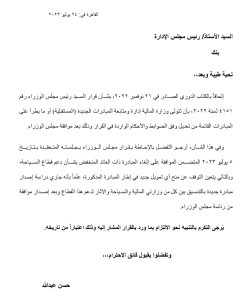ونوه المركزي في هذا الشأن إلى قرار مجلس الوزراء المنعقد بتاريخ 5 يوليو 2023، المتضمن الموافقة على إلغاء المبادرات ذات العائد المنخفض بشأن دعم قطاع السياحة، وبالتالي يتعين التوقف عن منح أي تمويل جديد في إطار المبادرة المذكورة، علماً بأنه جارٍ دراسة إصدار مبادرة جديدة بالتنسيق بين كل من وزارتي المالية والسياحة والآثار لدعم هذا القطاع، وبعد إصدار موافقة من رئاسة مجلس الوزراء.