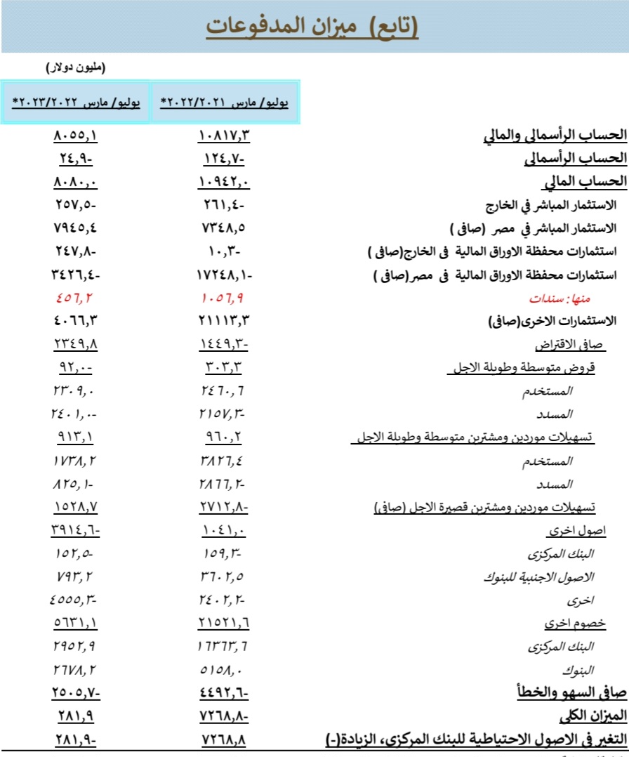 تعرف على أرقام ميزان المدفوعات المصري في أول 9 أشهر من 2022 – 2023