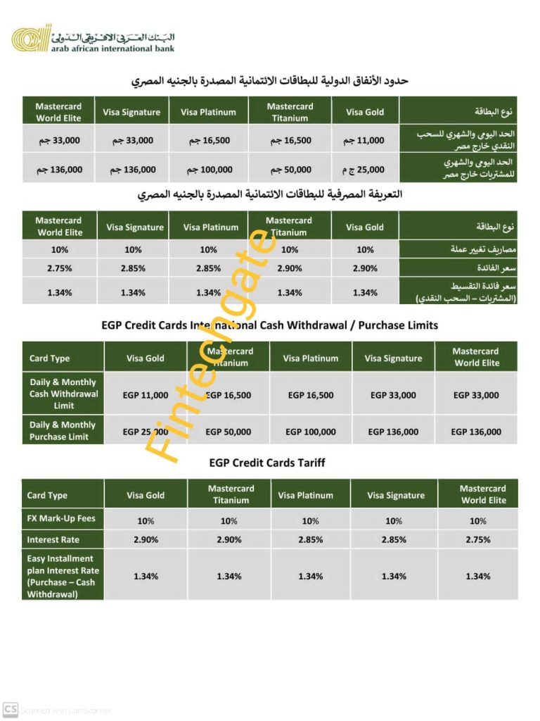 قرر البنك العربي الافريقي الدولي تعديل الحد الأقصى للشراء خارج جمهورية مصر العربية من خلال بطاقاته الإئتمانية وبطاقات الخصم المصدرة بالجنيه المصري وذلك إعتبارا من أول أغسطس كما رفع عمولة تدبير العملة خارج مصر إلى 10%.