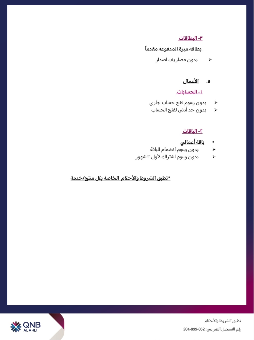 أعلن بنك QNB الأهلي عن طرح باقات تناسب كافة الأجيال العمرية بمميزات مصممة خصيصا لتناسب جميع احتياجاتهم بأبسط الإجراءات وبدون حد أدنى لفتح الحساب