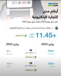 حجم عمليات التجارة الإلكترونية المنفذة من خلال منصة مدى السعودية في يوليو الماضي
