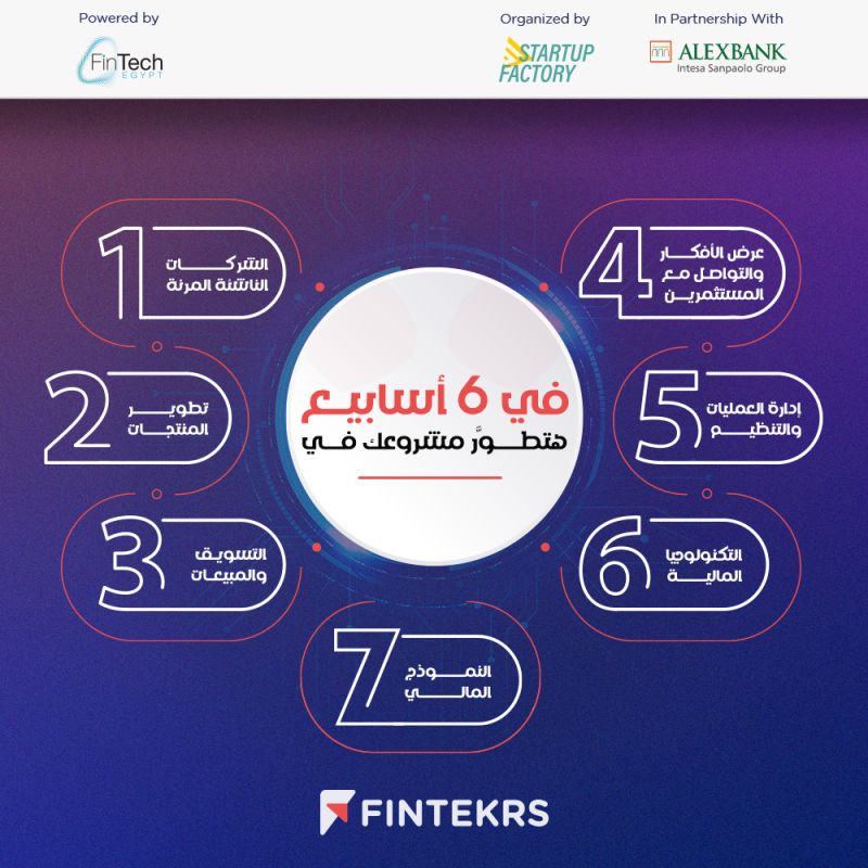 وينظم البرنامج Startup Factory وبرعاية فنتيك إيجيبت بالتعاون مع بنك الإسكندرية ويستمر لمدة 6 أسابيع، ويشمل البرنامج الشركات الناشئـة المرنـة، تطويـر المنتجـات، التسويق والمبيعات، عرض الأفكار و التواصل مع المستثمرين، إدارة العمليات والتنظيـم، التكنولوجيا المالية و النموذج المـالي.