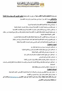 أعلنت وزارة التخطيط والتنمية الاقتصادية المصرية عن فتح باب التقدم لوظيفة معاون الوزير للسياسات العامة والاستثمار بخبرة لا تقل عن 7 سنوات فى مجال البحوث والدراسات الاقتصادية.