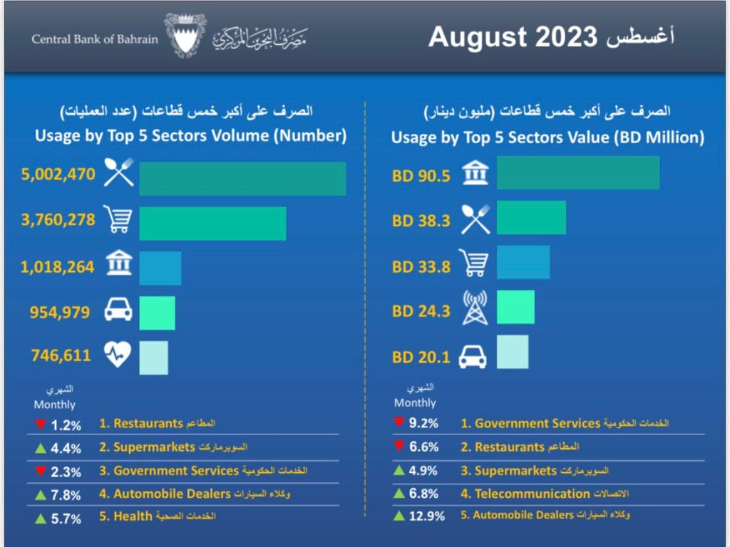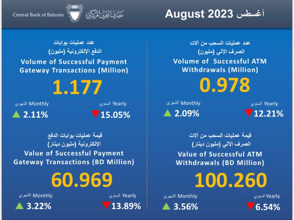 المركزي البحريني ينشر حركة المدفوعات والتجارة الإلكترونية خلال شهر أغسطس الماضي