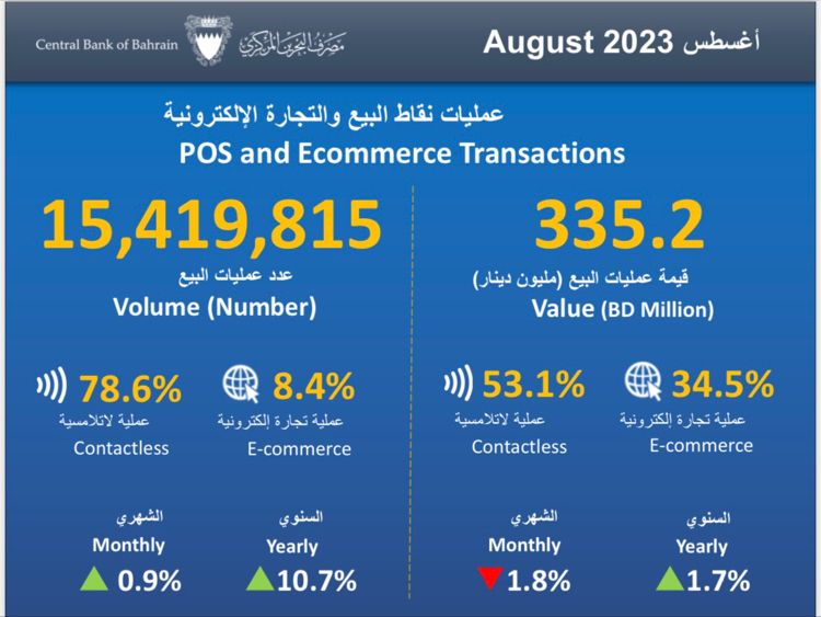 المركزي البحريني ينشر حركة المدفوعات والتجارة الإلكترونية خلال شهر أغسطس الماضي