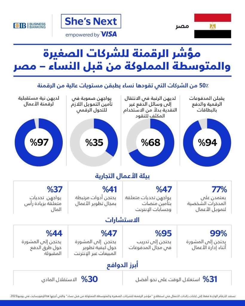 تأتي الدراسة عقب سعي فيزا لتمكين رائدات الأعمال محليًا عن طريق إطلاقالبرنامج العالمي للمنح “She’s Next”- “هي التالية”في مصر للمرة الثالثة، بالشراكة مع البنك التجاري الدولي في مصر (CIB).