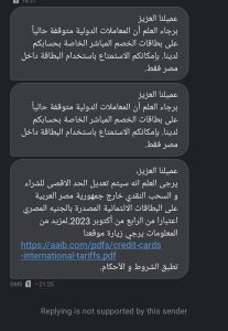 كشفت مصادر مصرفية لـ بوابة التكنولوجيا المالية Fintechgate عن أن البنك العربي الافريقي الدولي قرر إيقاف المعاملات الدولية على بطاقات الخصم المباشر.