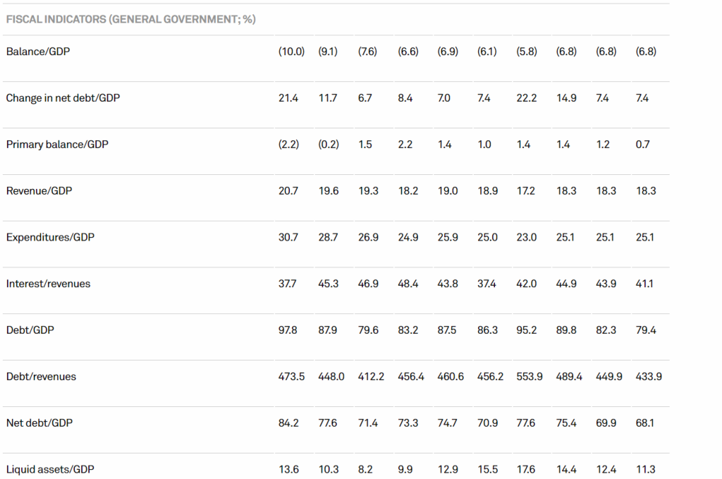 We could also lower the ratings if the government’s already elevated interest costs rise further, increasing the risk of a distressed debt exchange.