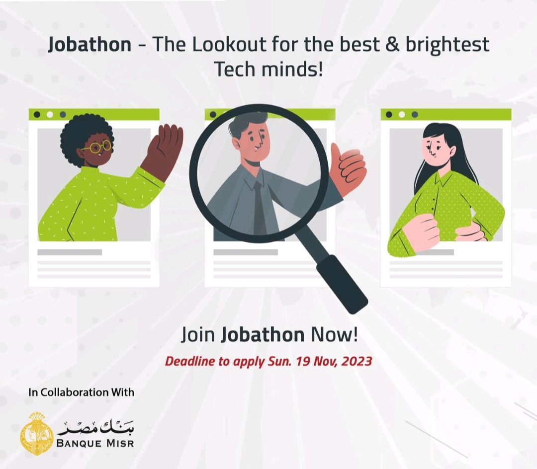 ويتم إجراء مقابلات مع من نجح في حل التحدي بجودة عالية ومنهجية سريعة للحصول على فرصة عمل في فريق التحول الرقمي التابع لبنك مصر.