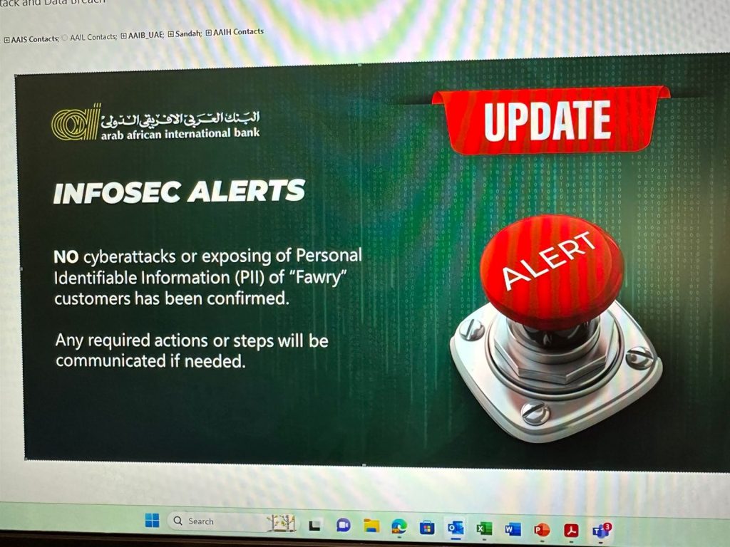 أكد البنك العربي الأفريقي الدولي عدم صحة تعرض الحسابات الشخصية الخاصة بشركة فوري لأي هجمات سيبرانية أو إختراقات أمنية.