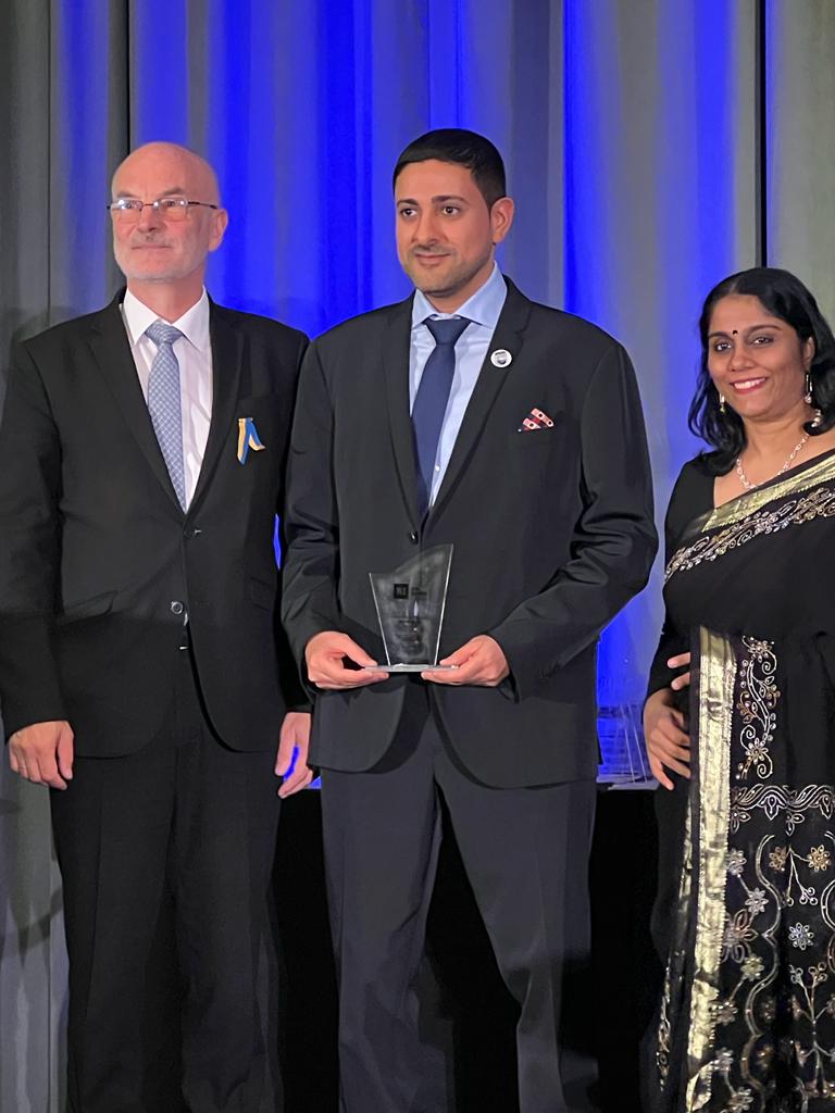 جاء ذلك خلال حفل جوائز جو جلوبال 2023 العالمية التي أقيمت في ولاية رود آيلاند الأمريكية من تنظيم وزارة تجارة ولاية رود آيلاند ومجلس التجارة العالمي، وبحضور جايمس جولسن نائب وزير التجارة الأمريكي و اليزابيث تانر وزيرة التجارة في ولاية رود آيلاند و أكثر من 1200 شخصية عالمية واقتصادية وتجارية وعدد من السفراء وممثلي الدول في الولايات المتحدة الأمريكية.