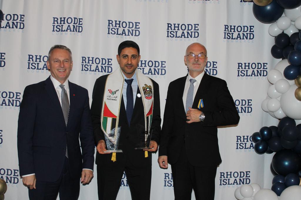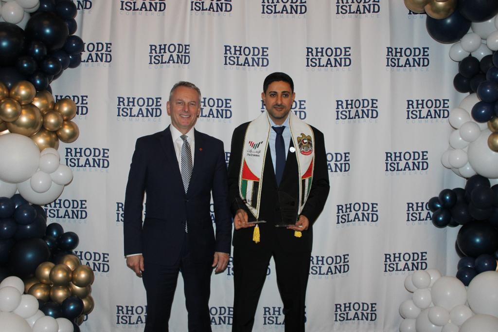 وتحدثت خلال الحفل اليزابيث تانر وزيرة التجارة في ولاية رود آيلاند التي رحبت بالحضور، وقامت بتسليم الجائزة إلى الدكتور خليفة سيف المحيربي.
