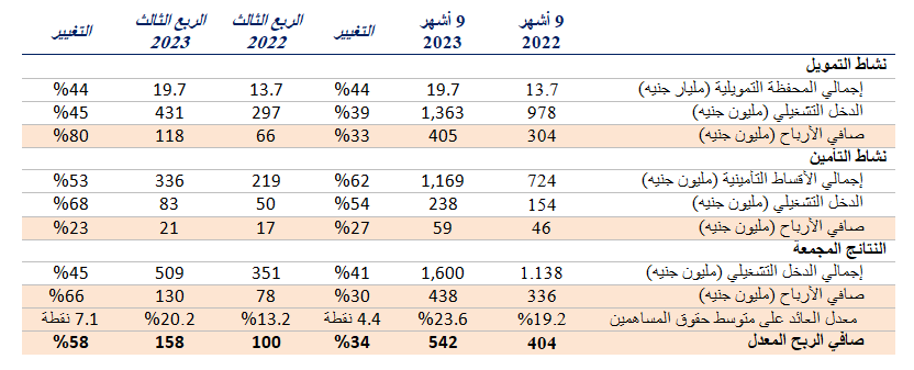 Contact Financial Holding SAE (CNFN.CA), Egypt’s largest non-bank financial services provider, announced today its consolidated financial results for the quarter and nine-month period ending 30 September 2023, with the Group reporting strong y-o-y operating income growth of 39% and 54% across its financing and insurance divisions, respectively. From a net income perspective, financing net income rose 33% y-o-y, while insurance net income was up 27% y-o-y. On a consolidated basis, normalized net income rose by 34% y-o-y to EGP 542 million in 9M-2023 continuing to showcase the Group’s ability to deliver sustainable growth and value despite the challenging market conditions.