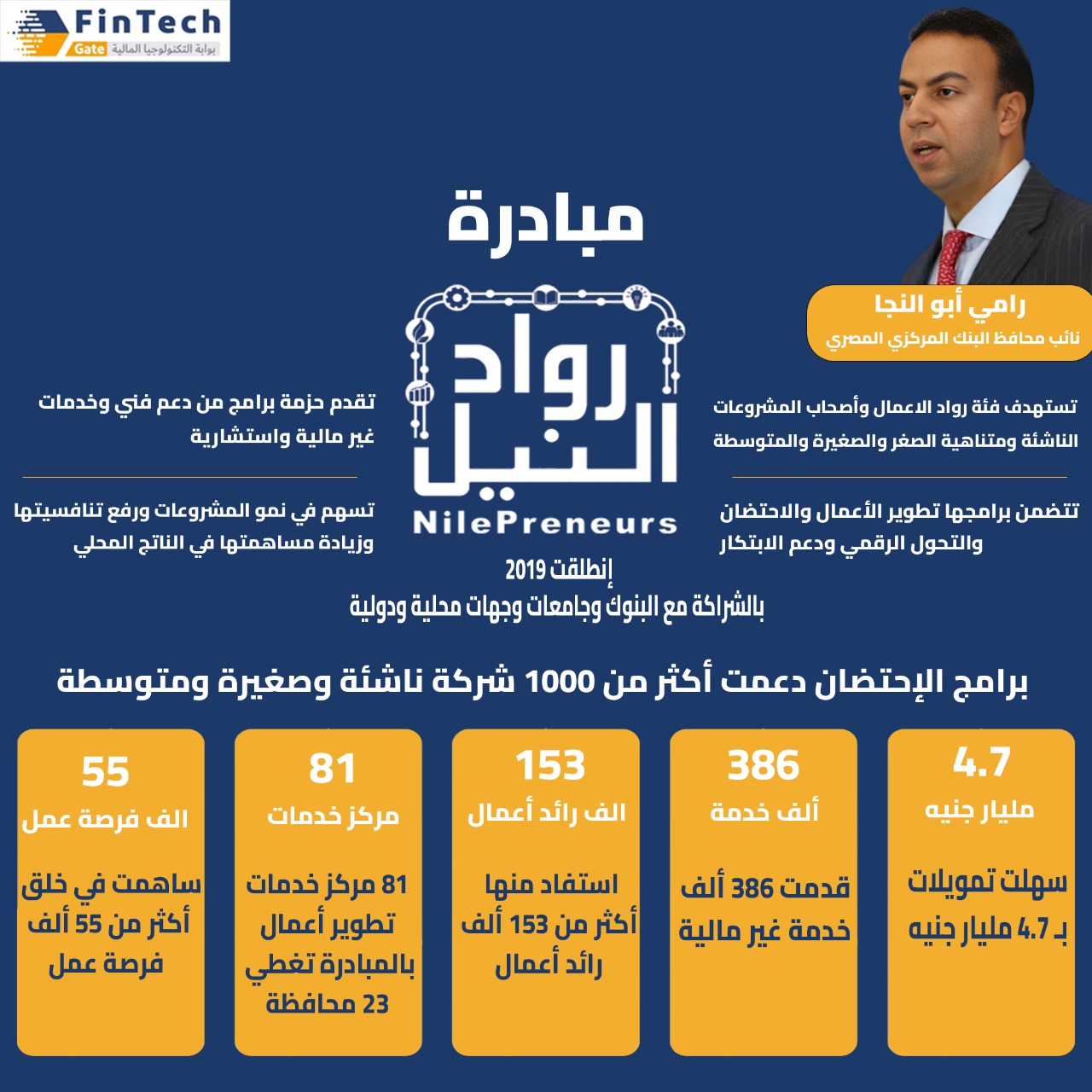 كما مبادرة «رواد النيل» دعمت أكثر من ألف شركة ناشئة وصغيرة ومتوسطة من خلال برامج الاحتضان والتحول الرقمي ودعم الابتكار مما ساهم في خلق أكثر من 55 ألف فرصة عمل بصورة مباشرة وغير مباشرة من خلال البرامج المختلفة للمبادرة.