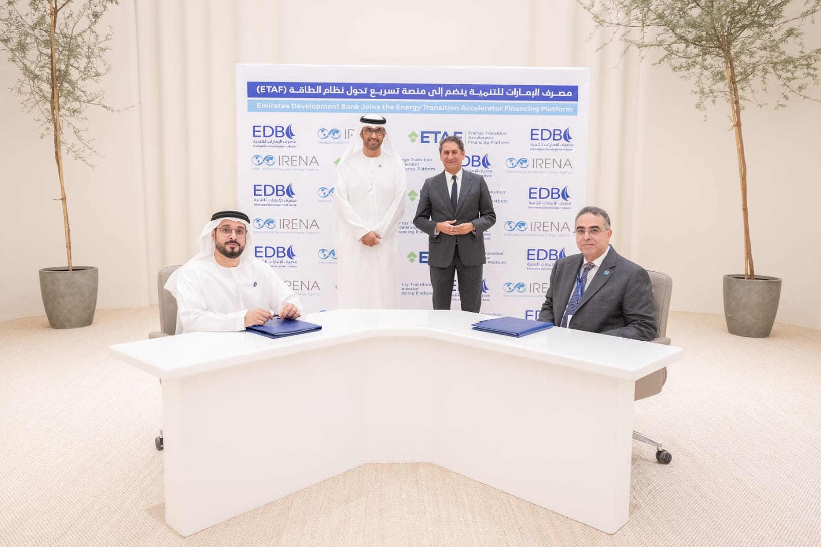 Emirates Development Bank (“EDB” or “the Bank”), the key financial engine of UAE economic development and industrial advancement, has committed up to AED 1.3 billion (USD 350 million) to support the Energy Transition Accelerator Financing (ETAF) platform, a global climate finance facility established by the International Renewable Energy Agency (IRENA) to accelerate the financing of renewable energy projects and drive funding of renewable energy projects in developing countries.