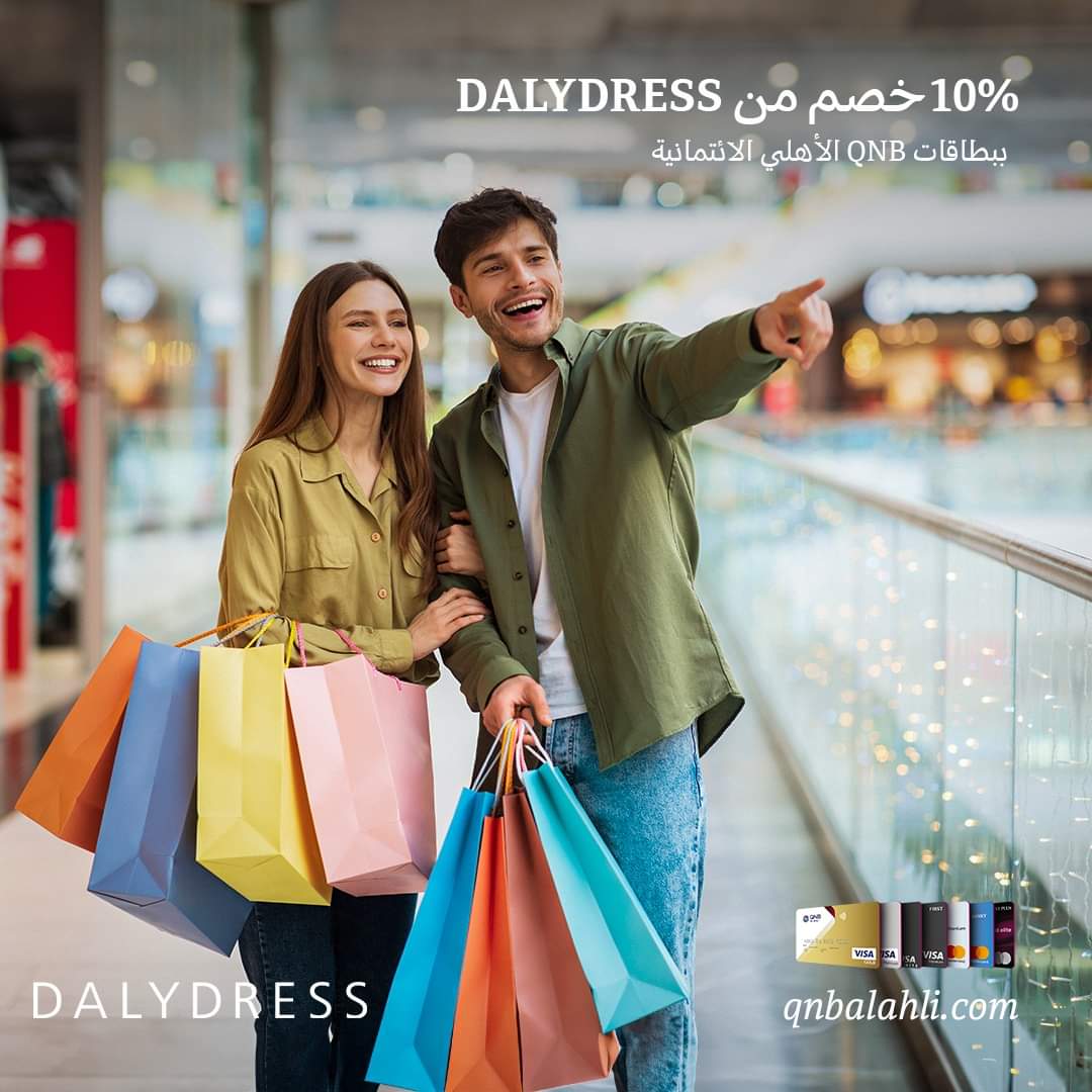 أعلن بنك QNB الأهلي لعملائه عن إتاحة خصم يصل إلى 10% عند شراء ملابسهم من فروع DALYDRESS و الدفع ببطاقات QNB الأهلي الائتمانية.
