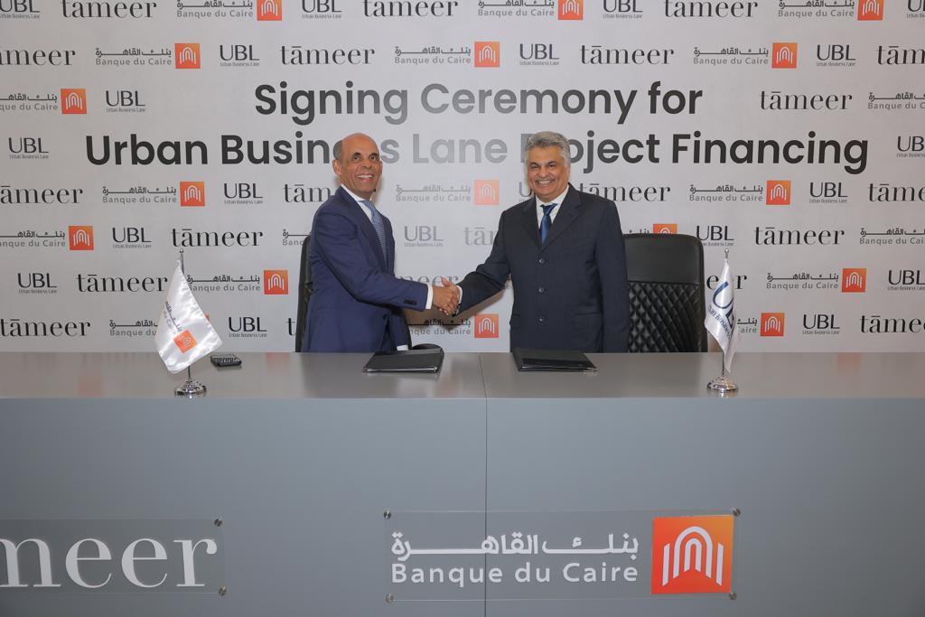 وقع بنك القاهرة وشركة التعمير للاستشارات الهندسية عقد تمويل بإجمالي تسهيلات تبلغ 956 مليون جنيه مصري، وذلك بهدف تسريع وتيرة الأعمال الإنشائية بمشروع Urban Business Lane، أحد أكبر مجمعات الأعمال المتكاملة بالقاهرة الجديدة، والذي يضم 10 مباني ادارية وتجارية بالتجمع الخامس، بإجمالي مساحات بنائية تصل الى 92 ألف متر مربع وبتكلفة استثمارية تبلغ 8.6 مليار جنيه.