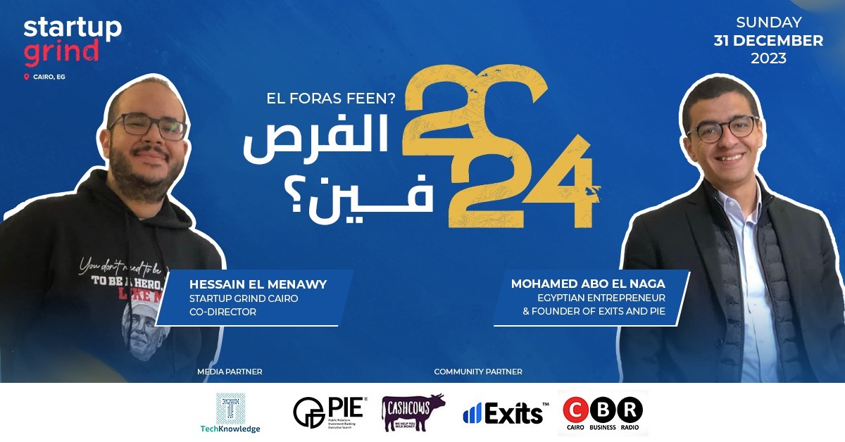 وخلال الفعالية يحاور حسين المناوي، مستشار تطوير الأعمال ومدير مكتب Startup Grind Cairo، رائد الأعمال محمد أبو النجا، الشريك المؤسس والمدير التنفيذي لشركة ExitsMena، لمناقشة تطورات قطاعات ريادة الأعمال المختلفة والشركات الناشئة خلال في ضوء التحديات التي فرضها عام 2023، كما يستطلعان الفرص خلال العام القبل.